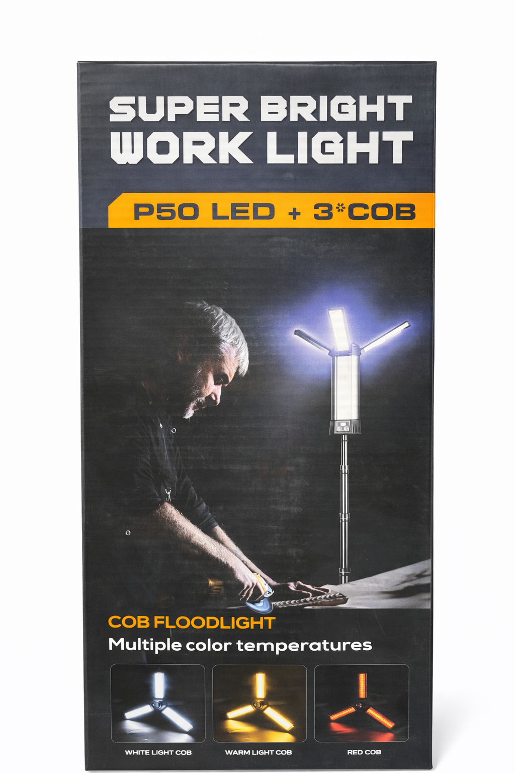 פנס LED עוצמתי לקמפינג 100W עם חצובה